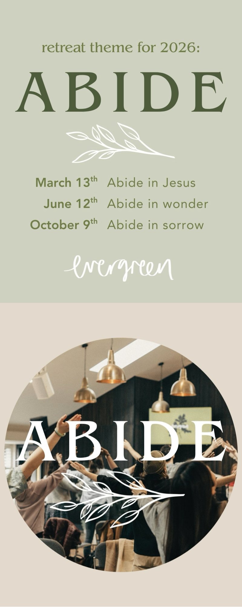 When the Evergreen leadership team met to consider 2026, a clear thread emerged as we prayed and discussed. So we're really excited to announce our theme for all the 2026 retreats: Abide.